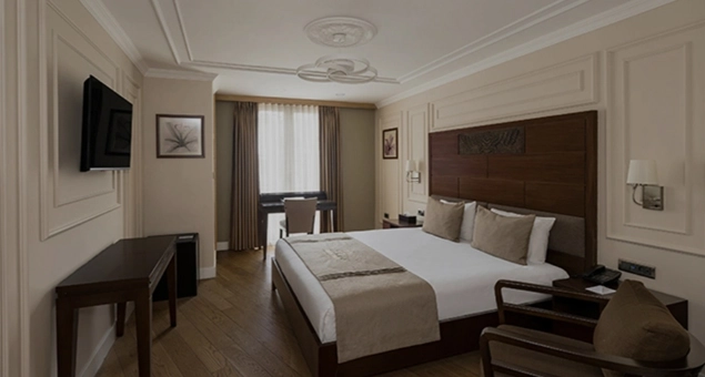 King Room with Balcony, kendine özel terası ve terasta bulunan oturma alanıyla Haliç, Galata Kulesi, Sultanahmet ve İstanbul’un eşsiz manzarasına hakimdir.